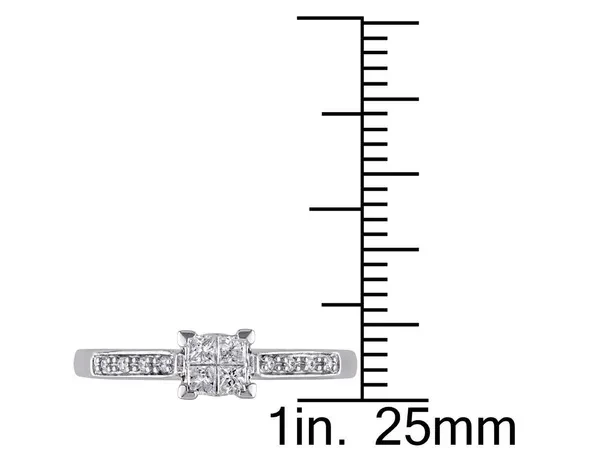 1/4 Carat (ctw I2-I3, G-H) Princess-Cut Diamond Engagement Ring in 10K White Gold This glamorous engagement ring features princess-cut white diamond center stones and round white diamond side stones set in 10-karat white gold. This extraordinary ring is enhanced with a high polish 10 karat white gold finish. Beautifully crafted in 10k white gold with a Polished Finish Stone Type: Diamond; Color: G-H; Clarity: I2-I3; 0.21 CTW; Quantity: 4; Princess Cut; Princess Shape; Natural; Invisible Setting Stone Type: Diamond; Color: G-H; Clarity: I2-I3; 0.05 CTW; Quantity: 8; Brilliant Cut; Round Shape; Natural; Pave Setting Diamond is the Birthstone for the Month of April This Diamond Engagement Ring is the perfect gift for any bridal engagement, birthday, anniversary, holidays, thank you, thinking of you, or for any reason at all SKU: 08DLG1001712-P