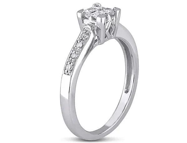 1/4 Carat (ctw I2-I3, G-H) Princess-Cut Diamond Engagement Ring in 10K White Gold
