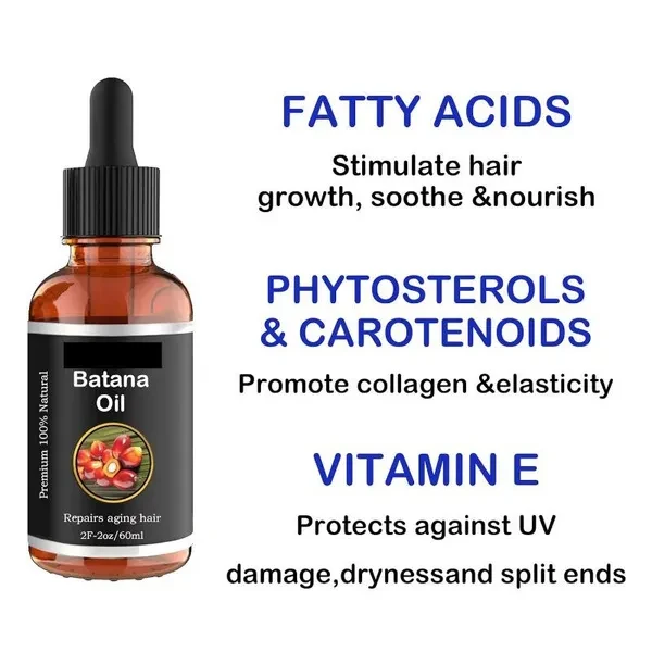 Specifications: Condition: Brand New Type: Batana Oil Net content: 30ml Main ingredients: Batana Oil Shelf life: 3 years Product efficacy: repair, care, nourish, hair growth batana oil for hair growth: Our unique formula is designed to nourish your hair from root to tip, promoting healthy growth and preventing damage. improve hair: Not only does Batana Oil improve the health of your hair, but it also enhances the radiance of your skin, leaving you with a natural, youthful glow. How to use: Apply Batana Oil to damp or dry hair, focusing on the ends for added moisture, or use it as a conditioning treatment for extra shine. Suitable for everyone: With its lightweight formula and pleasant scent, Batana Oil is easy to use and can be incorporated into your daily routine without any hassle,It can be given as a gift to anyone. Package Included: 1/5pcs x Batana Oil