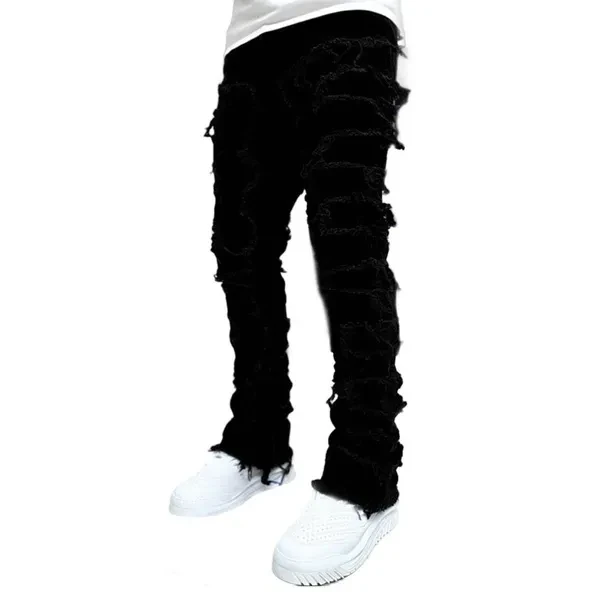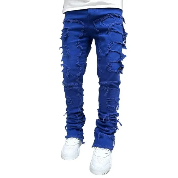 1pc Men's Distressed Ripped Patches Jeans Straight Leg Fit Elastic Denims Pants Hiphop Stretchy Jean Trousers Gifts ACR