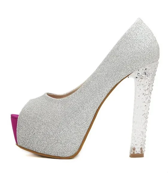 We suggest if you want make a correct choice you should choose by size chart in the images Brand Name:ZOGEER Gender:Women Item Type:Pumps Shoe Width:Medium(B,M) Process:Adhesive Season:Spring/Autumn Platform Height:3-5cm With Platforms:Yes Closure Type:Slip-On Toe Shape:Peep Toe is_handmade:Yes Insole Material:PU Upper Material:Flock Heel Height:High (3" and up) Decorations:Plain Leather Style:Soft Leather Style:Fashion Outsole Material:Rubber Occasion:Party Fit:Fits true to size, take your normal size Pump Type:Basic Lining Material:PU Model Number:T B 6165 Heel Type:Square heel Occasion:party,casual,wedding,dress Item Type:Pumps Shoe Size:34-39 Heel Height:13.5cm Platform:4.5cm Color:Rose,Blue,Silver Season:spring,autumn,summer Style:fashion,classics,sexy,sweet Heels shape:thick heels Fashion element:open toe,suede,crystal