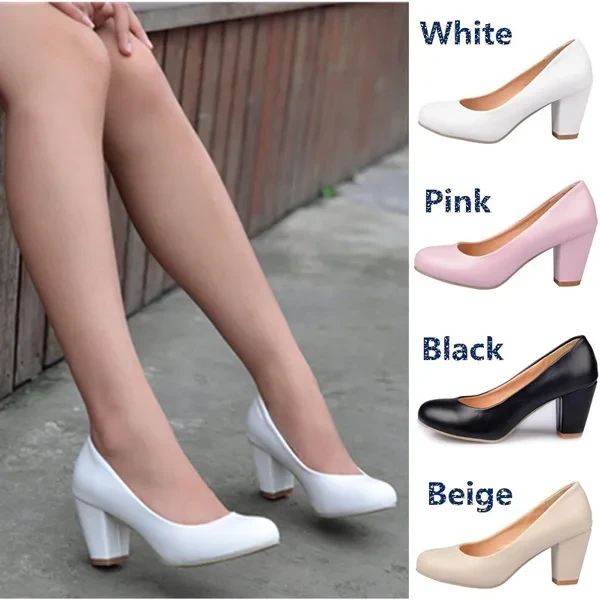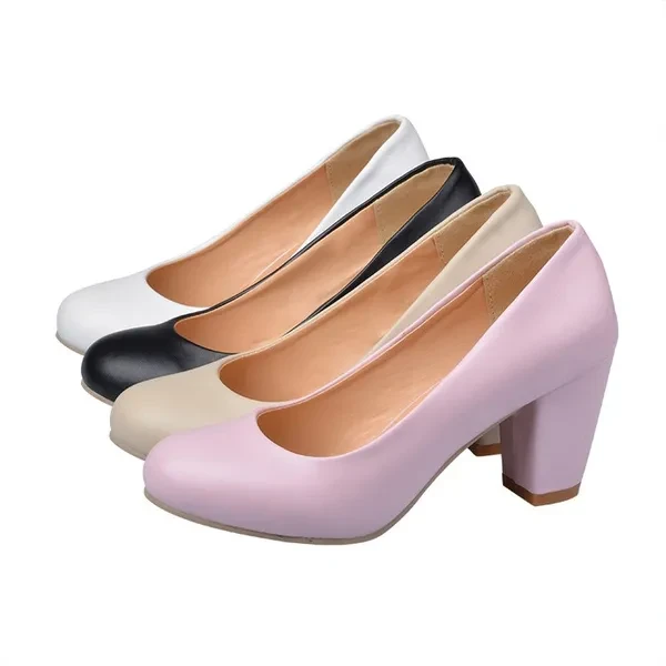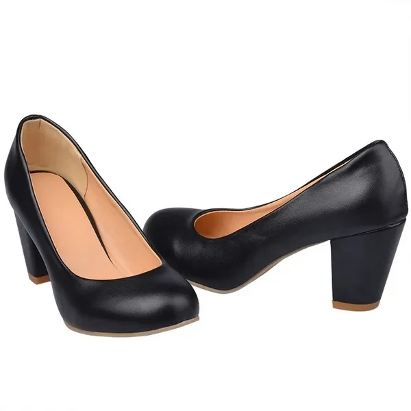 2016 new fashion Plus size 34-43 Hot sale round toe women pumps pu leather ladys high heels women casual dress shoes woman white and black color