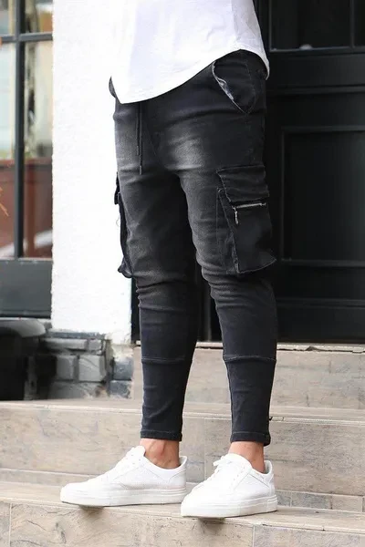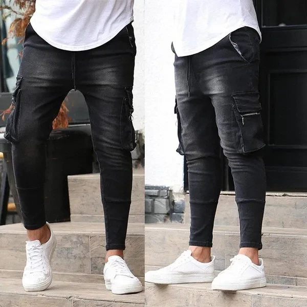 Welcome to our store Pants cuff style: small feet Process: hand-worn Color: dark blue, black Size:S,M,L,XL,XXL,XXXL Waist type: mid-waist Pants type: tight Elasticity: Shot Style Details: Multi-pocket Trousers placket: zipper placket Suitable for the season: Four seasons Fabric: Denim Package includes: 1*Jeans Because of manual measurement, please allow 1-3 cm error