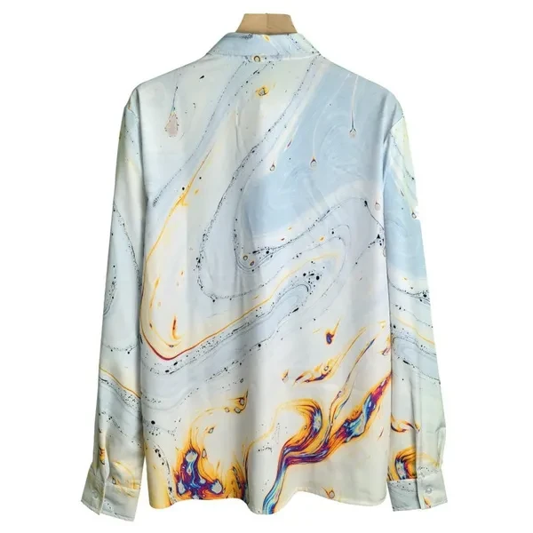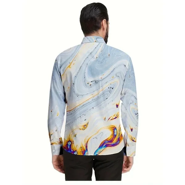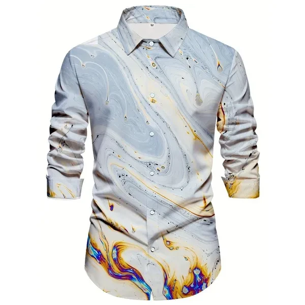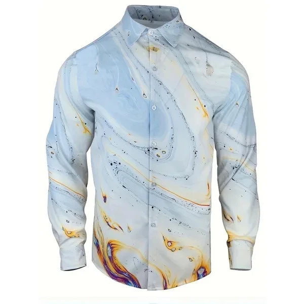 2025 Spring New Men's Abstract Gradient Printed Button Long Sleeve Shirt Fashion Versatile Collar Casual Men's Wear
