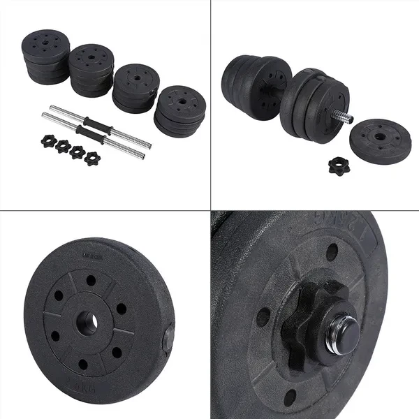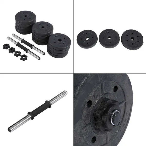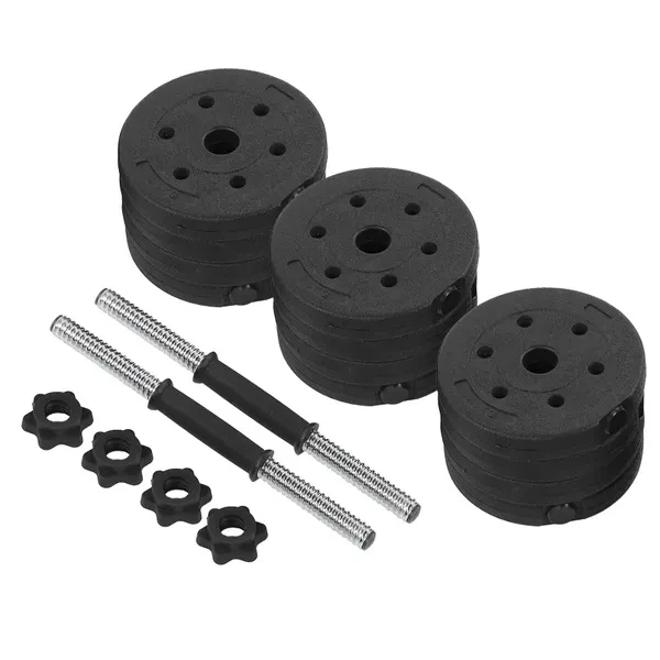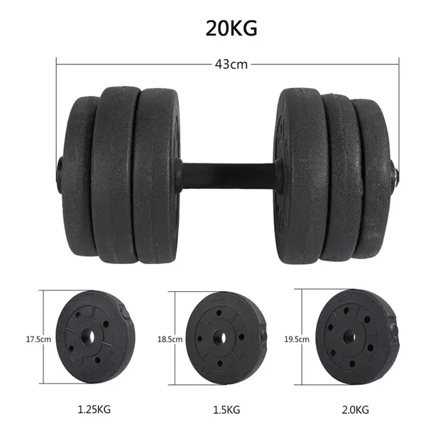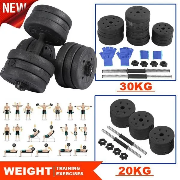 Features: 1. Made of high‑quality materials, no bending after repeated use. 2. Can be easily loaded and unloaded without taking up space 3. Sturdy and textured handle for a comfortable, secure grip. 4. Dumbbell for resistance training, good for arms, chest, back, core, and legs. 5. Nice fitness equipment, simple to perform exercise and suitable to use in your home or outdoors. Specification: Item type: 20KG Dumbbell Set Color: Black Bar Length: Approx. 41cm/16.14cm Package List: DumbbellS 20KG set: Total 12pcs dumbbell plates 4 x 1.25kg weight plates 4 x 1.5kg weight plates 4 x 2kg weight plates 2 x 41cm long Bars 4 x Nut ------------------------------------------------------------ Specification: Item type:30KG Dumbbell Set Material: Iron Color: Silver Packing List: Dumbbells 30kg set: total 16PCS Dumbbell Plates 4 x 1.25kg Weight Plates 4 x 1.5kg Weight Plates 4 x 2kg Weight Plates 4 x 2.5kg Weight Plates 2 x 47cm Long Bars 4 x Vinyl Star Collars 1 Pair of Gloves 1 Pair Elbow Protector 15kg each pair total weight 30kg Note: Please note that the new type and old type of this product will be sent randomly, and make sure you will not mind before ordering.