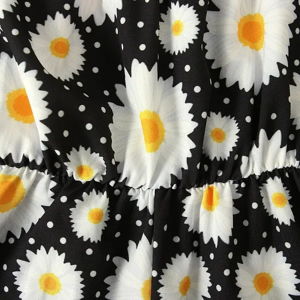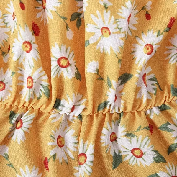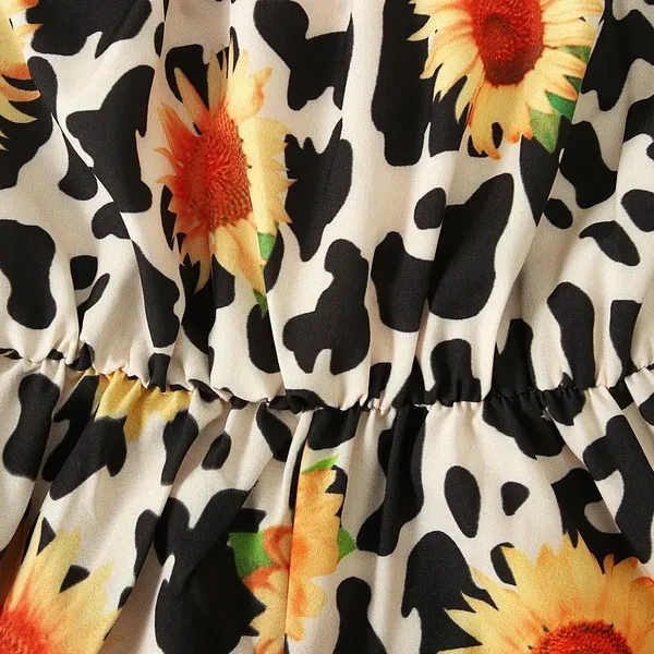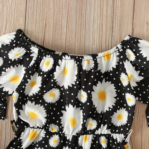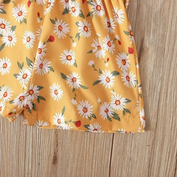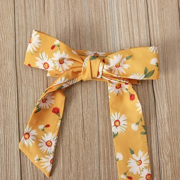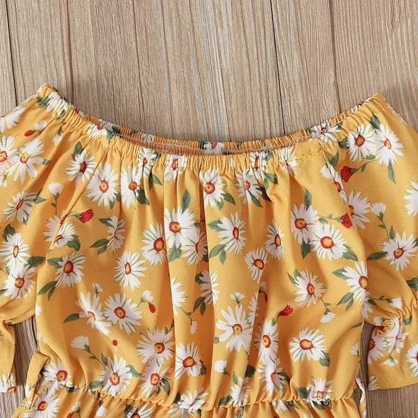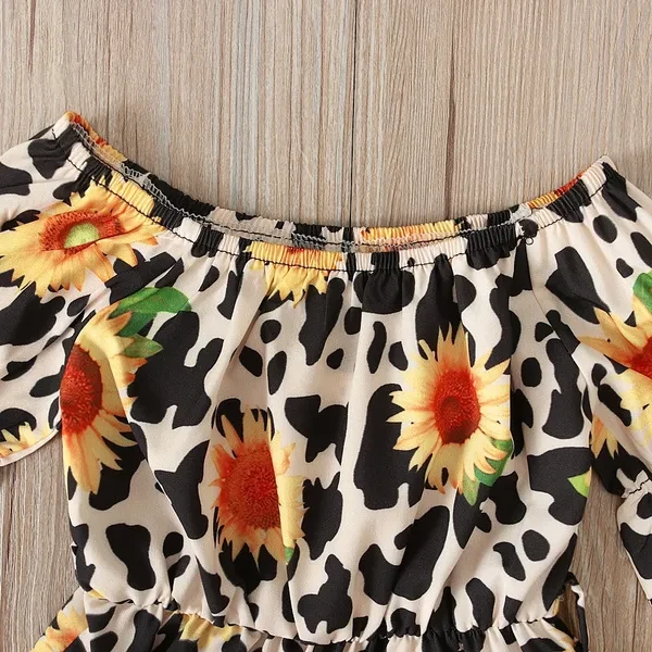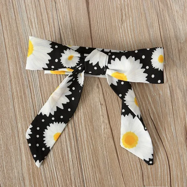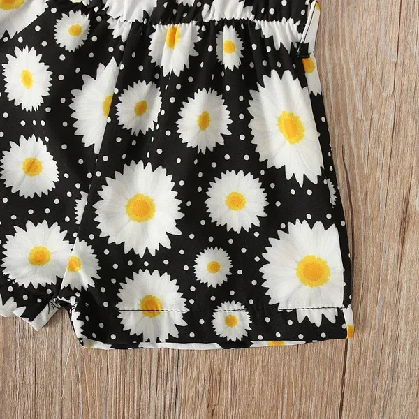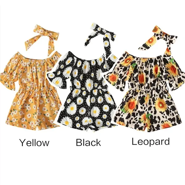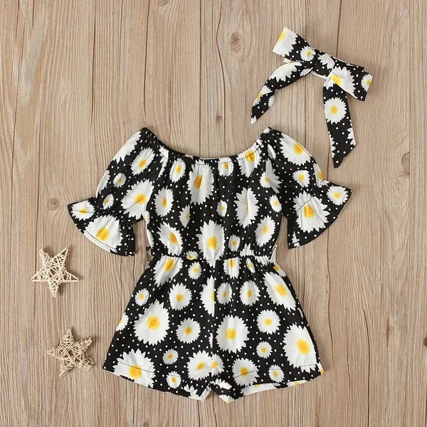 2Pcs Baby Girl Summer Outfit Short Sleeve Sunflower Printed Romper with Headband Clothes Set for 6 months-4 Years