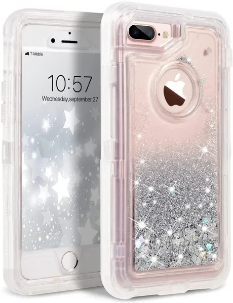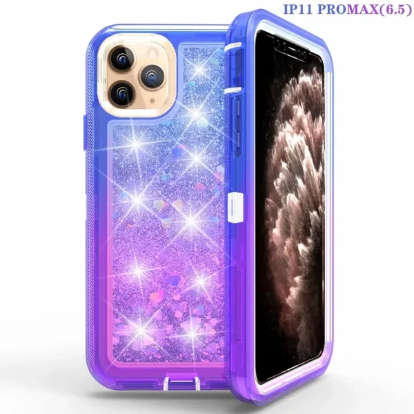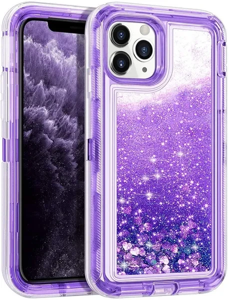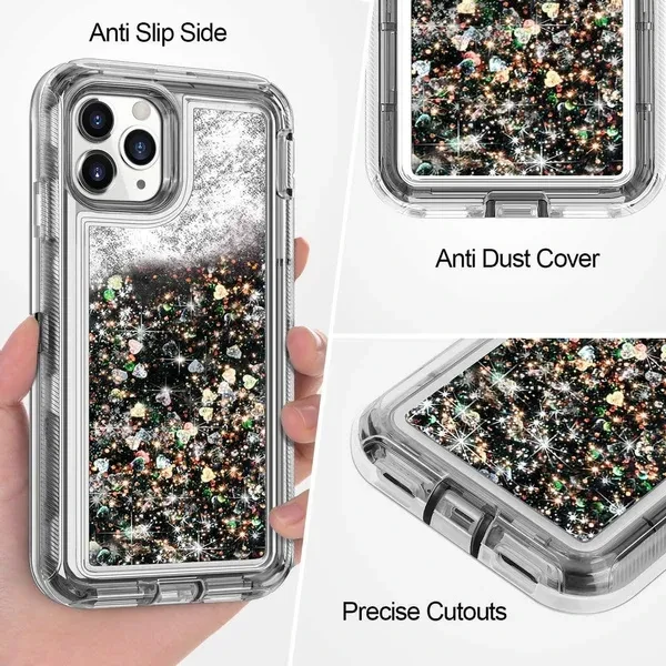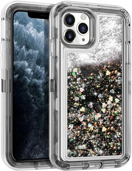 3 in 1 Hybrid Heavy Duty Defender Case Sparkly Floating Liquid Glitter Protective Hard Shell Shockproof TPU Cover for iPhone 6/7/8/6 Plus/6S Plus/7 Plus/8 Plus/X/XS/XR/XS Max/11/11 Pro/11 Pro