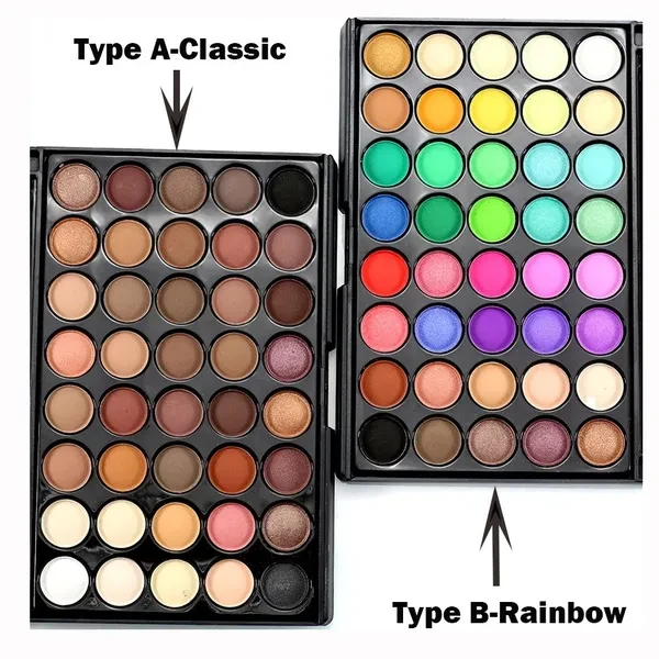 Features: High quality ingredients with silky shine color, lasting for all day long. 40 different colors professional eyeshadow cream. Perfect for party makeup/casual makeup/wedding makeup, etc. Light and soft, easily create a delicate and brilliant eye makeup finish. ​ Specifications: Item: Cosmetic Palette Material: Cream Color: Type A-Classic (40 colors) Type B-Rainbow (40 colors) Effect: Shimmer & Matte Palette Size: Approx. 150 X 100 X 10mm/5.91 X 3.94 X 0.39in. Application: Beginner/professional Included: 1 X Cosmetic Palette