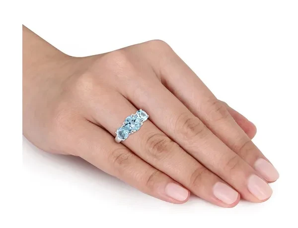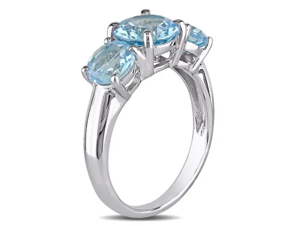 4.35 Carat (ctw) Blue Topaz Three Stone Ring in Sterling Silver This beautiful ring features three round-cut sky blue topaz stones set in sleek sterling silver. A 2.35 carat (ctw) brilliant round center stone is supported on 2 sides by 6x6mm, 2.00 carats (ctw) of round blue topaz gems making this stylish and affordable three stone ring featuring the birthstone of December. This charming ring is enhanced with a high polish finish. Beautifully crafted in 0.925 sterling silver with a Polished Finish Stone Type: Blue Topaz; Color: Blue; 4.35 CTW; Quantity: 3; Brilliant Cut; Round Shape; Dimensions: 6x6 mm; Natural; 4-Prong Setting This item ships directly from the USA. If you are not completely satisfied, simply return for a 100% refund Blue Topaz Gemstone is the Birthstone for the Month of December This Ring is the perfect gift for any birthday, anniversary, holidays, thank you, thinking of you, or for any reason at all SKU: 68DLG1004246BT-P