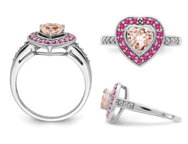 4/5 Carat (ctw) Morganite Heart Ring in Rhodium Plated Sterling Silver A stunning 4/5 carat heart shaped morganite gemstone sits in cool sleek rhodium plated sterling silver in the polished heart ring. Beautifully crafted in 0.925 sterling silver with a Polished Finish Stone Type: Morganite; Color: Pink; 0.85 CTW; Quantity: 1; Oval Shape; Natural; Prong Setting This item ships directly from the USA. If you are not completely satisfied, simply return for a 100% refund This item ships in signature jewelry box packaging, ready for gift-giving with a classic, elegant look and feel This Heart Ring is the perfect gift for any birthday, anniversary, holidays, thank you, thinking of you, or for any reason at all SKU: 68QGG4521MO-P