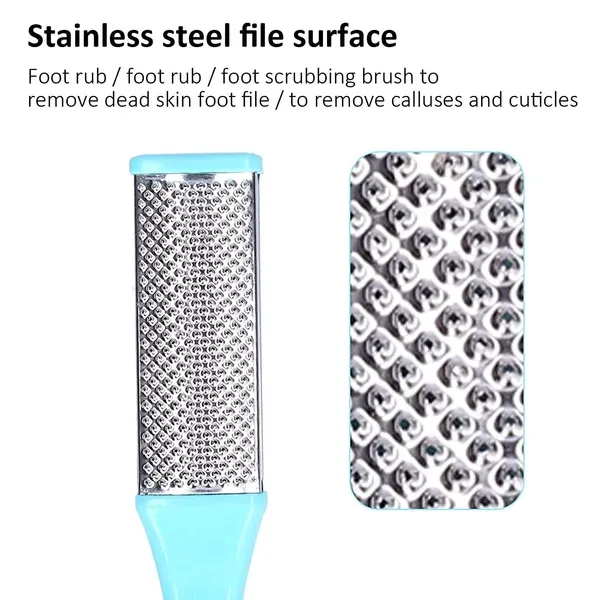 Description: Pedicure tools works on rounded surfaces of the feet. When you have a run in with a customer or yourself with serious callus build up. Finish off with a foot file every time. Perfect for the ones who like wearing high heels, flip flops, sandals or sneakers, especially for Models, White-Collar Ladies Sports-Enthusiasts, Waiters/Waitresses, Elderly People and Teachers. Hassle-free, You are worth it!For better results, use twice a week in or out the shower. To use the foot rasp, soak feet in warm, soapy water and lightly dry feet. Gently move the foot scrubber and callus remover in an up and down motion to file away rough skin. Specification: Material: PS, Stainless Steel Size: 16.6x2.5x1.5cm / 6.54"x0.98"x0.59"(L*W*H) Color: Blue/White Package Included: 4 Pcs foot rasp file
