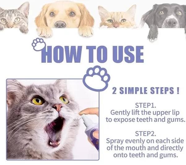 Features: 1. Removes bad breath from pets such as cats and dogs. 2. Keep your pet's mouth and teeth healthy. 3. Suitable for pets who don't like to brush their teeth. 4. Easy to carry, suitable for short-term travel with pets. Specification: Net Content: 50ml Shelf Year: 3 years How To Use: 1. Lift lips on either side of your pet’s mouth. 2. Spray 2-3 pumps directly into the mouth daily. 3. Do not let your pet eat or drink for one hour after use. Package Included: 1/5/10 Pcs * Teeth Cleaning Spray for Dogs & Cats