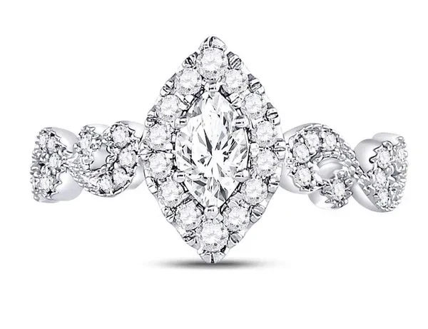 7/10 Carat (ctw G-H, I1-I2) Diamond Marquise Engagement Ring in 14K White Gold