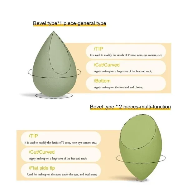 Features: 【MAKEUP SPONGE EGGS】: 4 colors and 3 cross-sections to meet different preferences and makeup needs. This Blender Beauty Foundation has good elasticity, does not deform, prevents squeezing, has good water absorption, and becomes larger after absorbing water. It does not drop powder and can be used repeatedly. , The surface is soft, does not harm the skin 【Precision and Purpose】:Makeup sponge has a pointed tip, flat edge and rounded sides, this versatile sponge offers complete control on even the hardest-to-reach areas of the face. The multiuse sponge leaves the complexion smooth and with a streak-free finish and non-floating powder. 【Show Your Beautiful】:The bottom is larger than other sponges, so it covers a lot of areas quickly, and the pointer tip is great for nooks and crannies and detail work. Seamlessly applying and blending makeup, ultra beauty makeup blenders is an essential tool for creating a smooth, airbrushed finish. 【Material】:Latex-free material, Q bomb soft cute Skin-friendly, Wet and dry use, The Makeup sponge turns bigger in water, feels elastic, and Reduces the gap after absorbing water to swell to prevent inhalation of cosmetics. 【MAKEUP SPONGE CASE】: made of high-quality hydrophilic non-latex, strong and durable, built-in detachable compartment, can organize makeup sponge eggs, convenient snap switch, transparent material for easy access, easy to carry and Store Specificaton: Color: Pink,Green,Purple,Yellow Material: Hydrophilic non-latex Packing list: 7Pcs/Set How to Clean It Efficiently? ● Dampen in warm water. ● Apply the mild cleaner on it. ● Rub it gently and rinse thoroughly. ● Squeeze out the water and air-dry it.