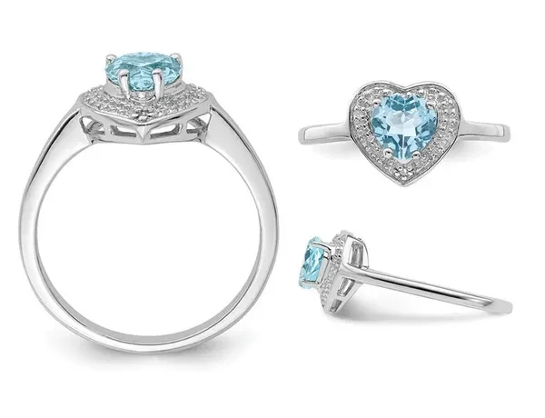 9/10 Carat (ctw) Blue Topaz Heart Promise Ring in Sterling Silver A heart cut shaped swiss blue topaz gemstone is the centerpiece of this crisp rhodium plated sterling silver ring in this simple and attractive gemstone ring , featuring the birthstone of December. Beautifully & Professionally Crafted with the Finest Materials Can be cleaned with standard jewelry cleaning solutions, warm soapy water or polishing cloths - do not use abrasives as it will leave scratches This item ships directly from the USA. If you are not completely satisfied, simply return for a 100% refund This item ships in signature jewelry box packaging, ready for gift-giving with a classic, elegant look and feel This item is the perfect gift for any birthday, anniversary, graduation, stocking stuffer, holidays, thank you, thinking of you, Christmas, Mother's Day, Valentine's Day or for any reason at all SKU: 68QGG4497BT-P