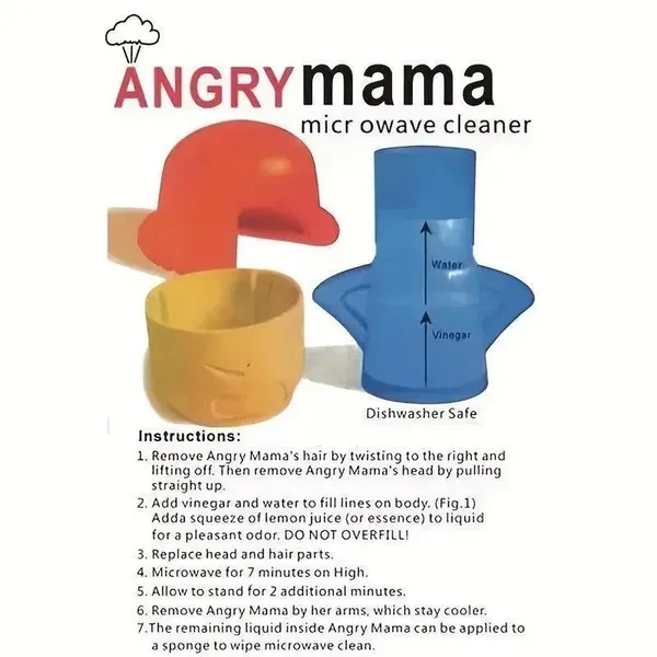 Introducing the Angry Mama Microwave Cleaner, your new best friend for quick and effective kitchen cleaning! This innovative steam cleaner is designed to tackle the toughest microwave messes in just a few minutes, leaving your appliance looking brand new. With its unique design, Angry Mama not only cleans but also adds a fun element to your kitchen chores. What sets Angry Mama apart is its eco-friendly cleaning method. By using a simple mixture of vinegar and water, you can disinfect and clean your microwave without the use of harsh chemicals. This makes it a safe choice for families and anyone looking to maintain a healthy kitchen environment. But the versatility of Angry Mama doesn't stop there! This handy cleaner can also be used on other kitchen appliances and surfaces, making it an essential addition to your cleaning supplies. Whether you're dealing with a dirty stovetop or grimy countertops, Angry Mama is up to the task. Using Angry Mama is incredibly easy. Just fill her with vinegar and water, place her in the microwave, and let the steam work its magic. In no time, you'll be able to wipe away the loosened grime with minimal effort. Make cleaning fun and efficient with the Angry Mama Microwave Cleaner, and enjoy a sparkling clean kitchen in minutes! • Quick and Effective Cleaning: The Angry Mama Microwave Cleaner effortlessly removes stubborn stains and grime in just minutes, restoring your microwave to its original shine and cleanliness. • Eco-Friendly Solution: Made with just vinegar and water, this steam cleaner provides a safe and chemical-free way to disinfect and clean your kitchen appliances, ensuring a healthy environment. • Versatile Use: Not limited to microwaves, Angry Mama can also tackle other kitchen surfaces and appliances like stovetops and countertops, making it an essential cleaning tool for every home. • Fun and Unique Design: With its quirky Angry Mama character, this cleaner adds a playful touch to your cleaning routine, making it a perfect gift for friends and family who love fun kitchen gadgets. • Easy to Use: Simply fill the Angry Mama with vinegar and water, microwave for a few minutes, and watch as steam loosens dirt and grime effortlessly, making cleaning a breeze.