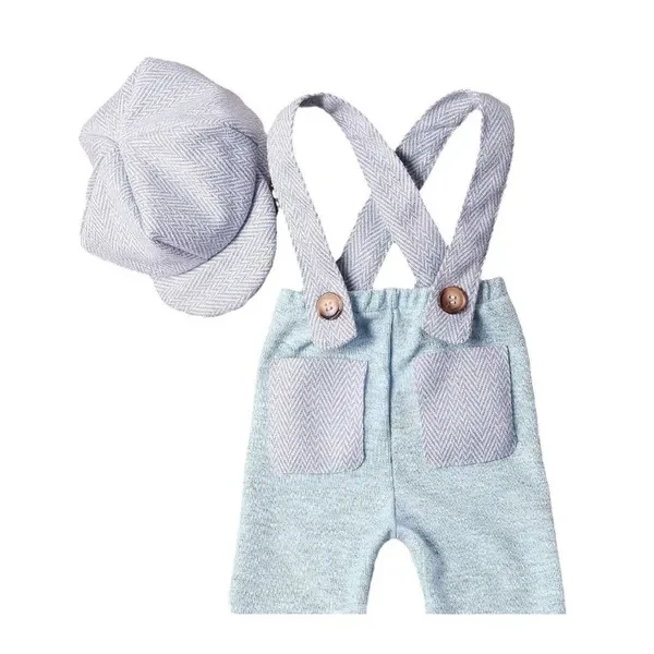 <p>Features: your baby's adorable moments in with this strikingly striped two piece set, featuring a baby suspender pants and a matching duckbill caps for the perfect photo outfit. Crafted from high quality polyester fabric, this set offers comfort with its soft, breathable material that is easy to clean, ensuring your little stays cozy and fuss Designed with adjustable straps and a versatile hat, this comfortably fits newborns aged 0-1 month, growing with your baby during those early weeks. For daily wear, special photo or celebratory event, this baby suspender and caps set will make your infant the center of attention with its fashionable and endearing appeal. The convenient pockets add a practical touch to the trendy making it not only a photogenic outfit but also a functional choice for parents who cherish both and utility for their babies. Specifications: Material: Polyester Pants Length: About. 30cm/11.81in(for Baby 0-1 Month) Color: Blue/Light Green Package Includes: 1pc Hat 1pc Romper note: Please allow 1-2cm errors due to manual measurement. Due to difference between different monitors, the picture may not reflect the item actual color. </p>