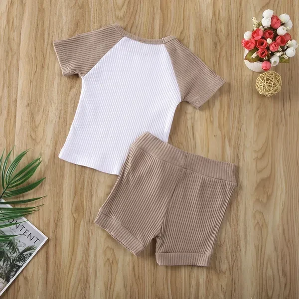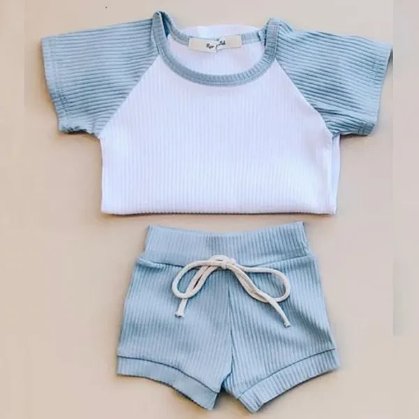 Fashion design,100% Brand New,high quality! Material: Cotton Color: Coffee,Blue Size Tops Length(cm) Bust(cm)*2 Shorts Length(cm) Sleeve(cm) Waist(cm) Age 80 32 24.5 23 14.5 20 6-12M 90 34 25.8 24 15 21 1-2Y 100 36 27.2 25 16.5 22 2-3Y 110 38 28.6 26 17 23 3-4Y 120 40 30 27 18 24 4-5Y There is 2-3% difference according to manual measurement. please check the measurement chart carefully before you buy the item. 1 inch = 2.54 cm Please note that slight color difference should be acceptable due to the light and screen. What You Get: 1 x Top+1x Shorts