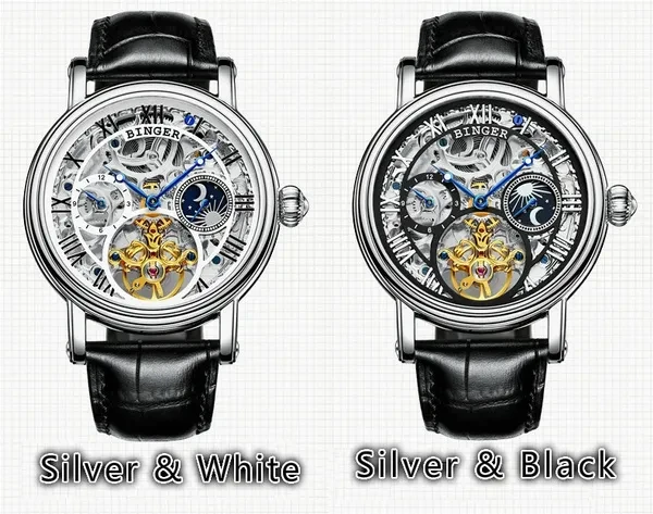 BINGER Quality Watches Automatic Watches For Men Mechanical Clock Silver Skeleton Business Wrist Uhr with Gift Box