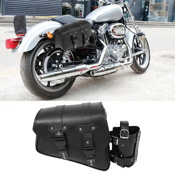 Black Left Motorbike Saddlebag Left Side Tool Bag Luggage Bag for Motorcycle Waterproof Faux Leather Adjustable Buckle Bag with Water Bottle Holder Bag