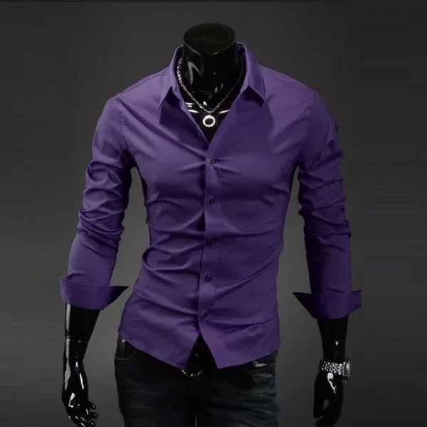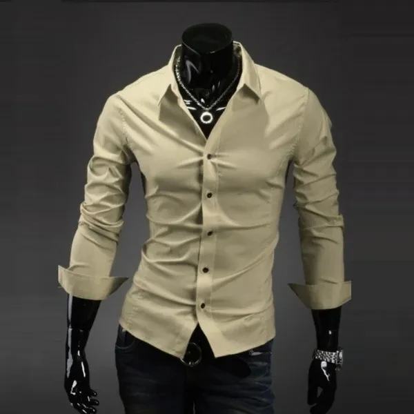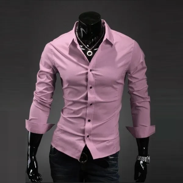 Blouses for Men Slim Elegant Shirts High Quality Solid All-match