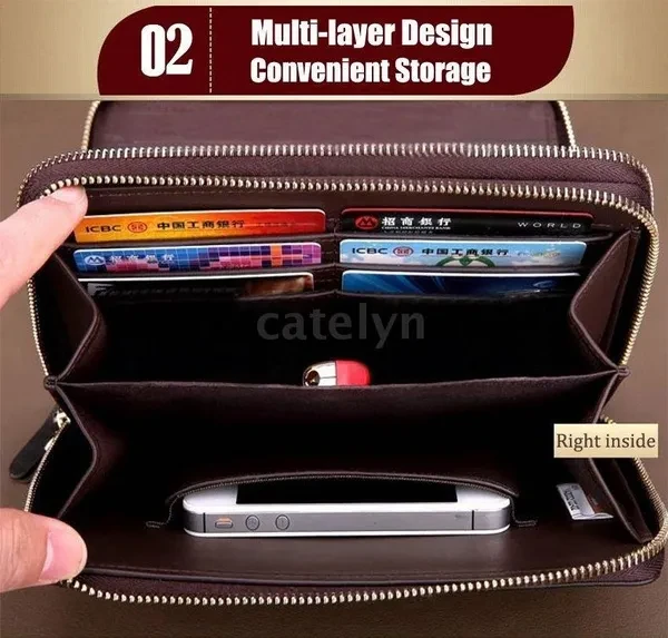 Business Men Luxury Wallets Long PU Leather Cell Phone Clutch Wallet Purse Hand Bag Top Zipper Large Wallet Card Holders
