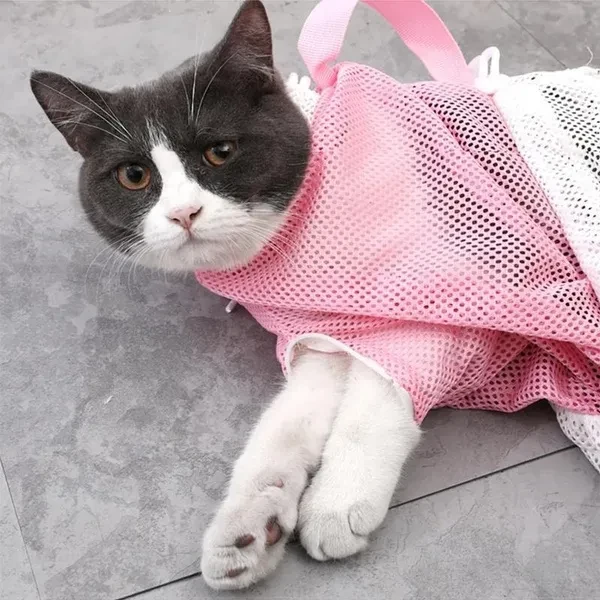 NOTICE: Product Details: Cat GroomingAdjustable Multifunctional Polyester Cat Washing Shower Mesh Bag Feature: 100% brand new and high quality. Description: Item Type:Cat Shower Mesh Bag Style:Mesh Material:Polyester Packing:1PC Cat Shower Mesh Bag Applications:Bathing, injection, rubbing ears, nail cutting, injection, medicine Note: 1. Manual measurements may have 1-2 cm error. 2. For the two legs Clothes , pls pay attention to chest girth, And for four legs, must fit for chest girth and back length. 3. For the growing pet, you'd better choose the bigger size.