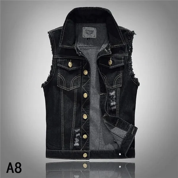 Cotton Jeans Sleeveless Jacket Men Plus Size 6XL Black Denim Jeans Vest Men Cowboy Denim Vest Waistcoat Mens Jackets