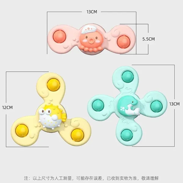 Feature: Suct on smooth sufaces, have fun during bathing,dining,stroller walking,car window etc, Nylon bearing, anti-rust in water, enduring rotation Suction toy, easy to assembly on falt surface to have fun ABS small ball, make rustling during rotation, and can roll around the ball Cute ocean animal design and soft color, great gifts and educational toys for baby&Toddler&Kids Item: Suction spinner Material:Eco-friendly plastic Diameter:12-13cm,details as pictures Color: Pink,green,yellow [Multicolor=3pcs/set] Package: With OPP bag Note: 1. There might be slightly difference in color, because of the computer monitor settings. 2. With the difference in the measurement method, please allow 1~2cm in size deviation (1cm=0.39 inch).Thank you for understanding!!