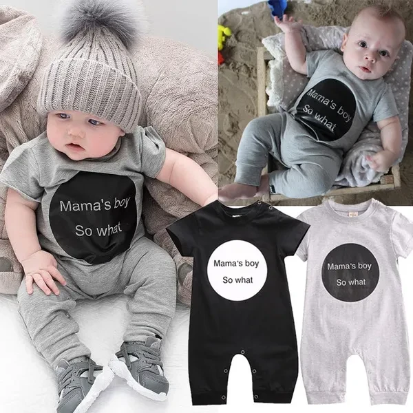 Brand:: Unbrand Occasion:: Casual Color:: Gray/Black Season:: Summer Material:: Cotton Country/Region of Manufacture:: China Sleeve Length:: Short Sleeve Pattern:: Letters Package included: 1 x Jumpsuit Size Chart: Size Length Chest*2 Age Advice 70 50 CM 27 CM 0-6 Months 80 53 CM 28 CM 6-9 Months 90 56 CM 29 CM 9-12 Months 100 59 CM 30 CM 12-18 Months