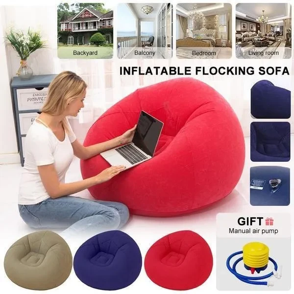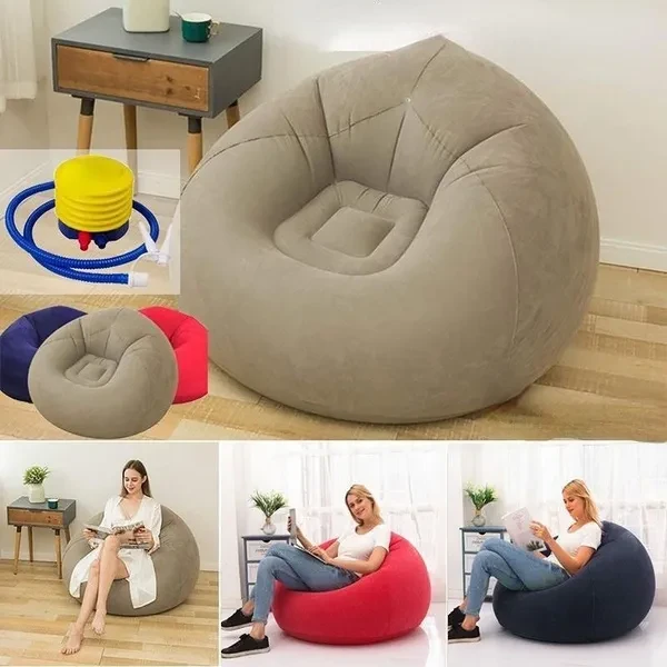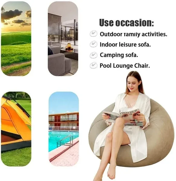 Deluxe Bean Bag Chair Foldable Flocking Inflatable Sofa Living Room Outdoor Bean Bag Chair Lounger Ultra Soft Inflatable Lazy Sofa Couch