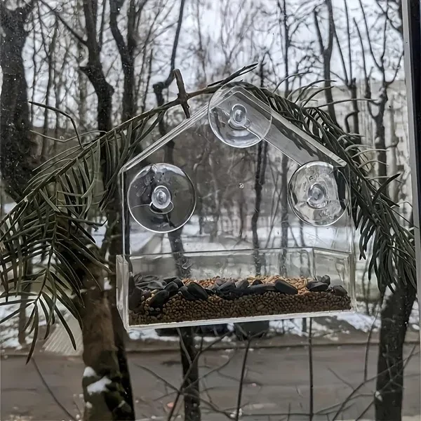 [Easy Fill Acrylic Bird Feeder] Clear Acrylic Window-Mounted Bird Feeder - Transparent, Adhesive Bird Cage with Easy Fill Design, Perfect for Small Birds, Durable PMMA Material, Ideal for Outdoor Gard