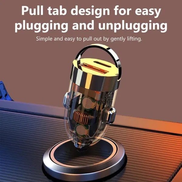 Elough 120W Transparent Invisible Pull Ring Car Charger USB Type C Fast Charging QC3.0 PD Phone Charger Adapter For Mobile Phones Accessories