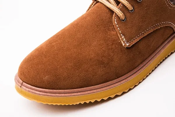 Come without Shoe Box! Item: H03 Upper material: suede leather Sole material: Dichotomanthes Whether inventory: no Gender: Male The upper height: low Sole craft: plastic injection shoes Cortical features: anti velvet skin In the way: the front tie Popular elements: flange, thread, tassel, muffin with, totem, leather stitching Function: Non Slip Pattern: carved wing Suitable for seasons: winter, spring, autumn Color: black, blue, Khaki Size: 39,40,41,42,43,44,39-44 :