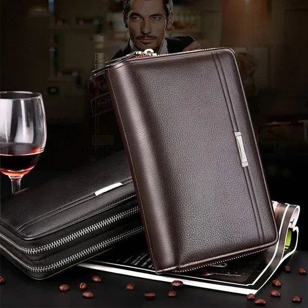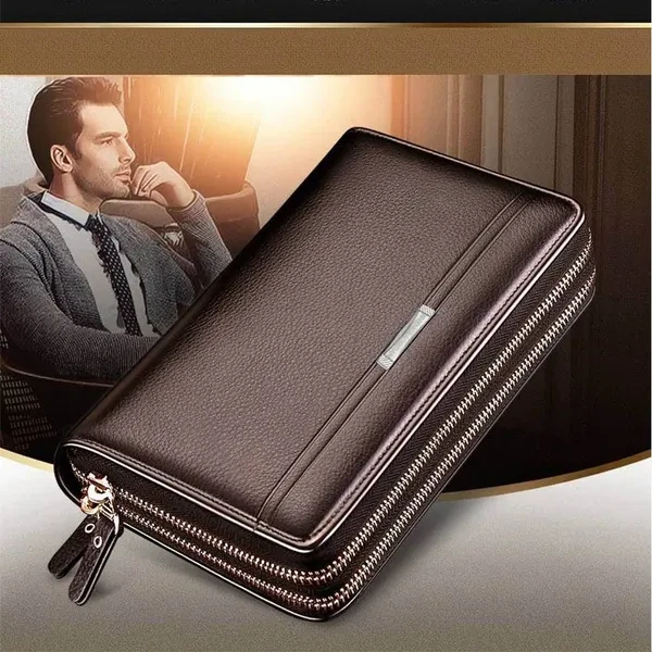Fashion Business Men's PU Leather Wallets Handbag Multifunctional Bank/ID Card Holder Wallet Double Zippers Large Capacity Clutch Bag