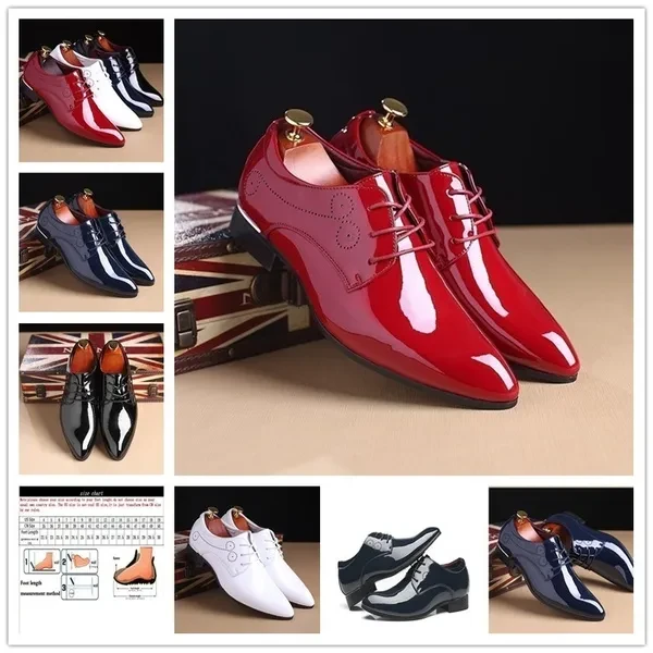 Fashion Mens Shoes Casual Luxury leather shoes Men Flats shoes wedding shoes Loafers Office shoes for men businessshoe Plus Size Shoe size table (Note Our size is not standard US size, and it is only equal to foot length!) US4=China size 35=suitable for foot length 22.5cm US5=China size 36=suitable for foot length 23cm US6=China size 37=suitable for foot length 23.5cm US7=China size 38=suitable for foot length 24cm US8=China size 39=suitable for foot length 24.5cm US9=China size 40=suitable for foot length 25cm US10=China size 41=suitable for foot length 25.5cm US11=China size 42=suitable for foot length 26cm US12=China size 43=suitable for foot length 26.5cm US13=China size 44=suitable for foot length 27cm US14=China size 45=suitable for foot length 27.5cm US15=China size 46=suitable for foot length 28cm US16=China size 47=suitable for foot length 28.5cm US17=China size 48=suitable for foot length 29cm US18=China size 49=suitable for foot length 29.5cm US19=China size 50=suitable for foot length 30cm Gender: Men Feature:Breathable Season:Spring/Autumn/Summer/Winter Closure Type:Lace-Up or Slip On Shoes ? (Based on the picture) Style:Fashion/Casual Upper Material: Leather Outsole Material: Rubber Colors: Red,Grey, Brown, The Size: Large Size