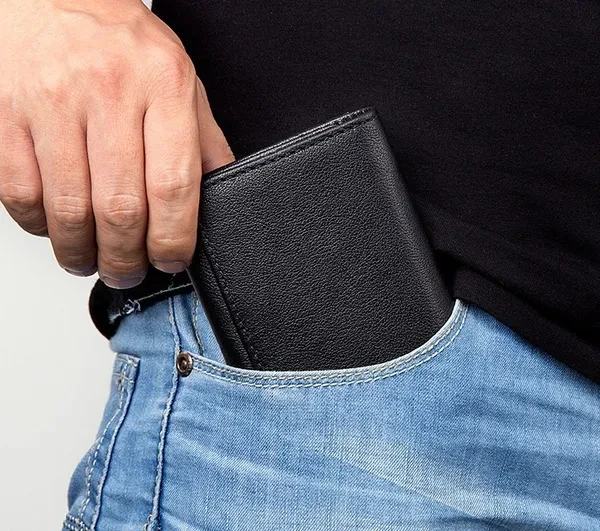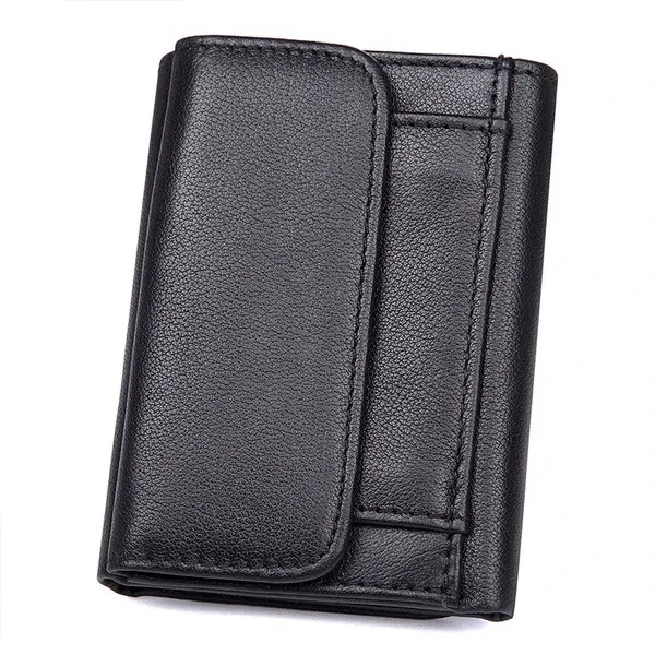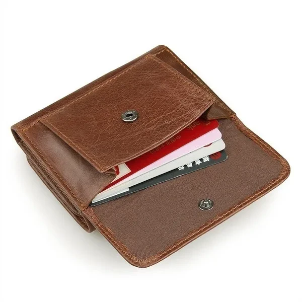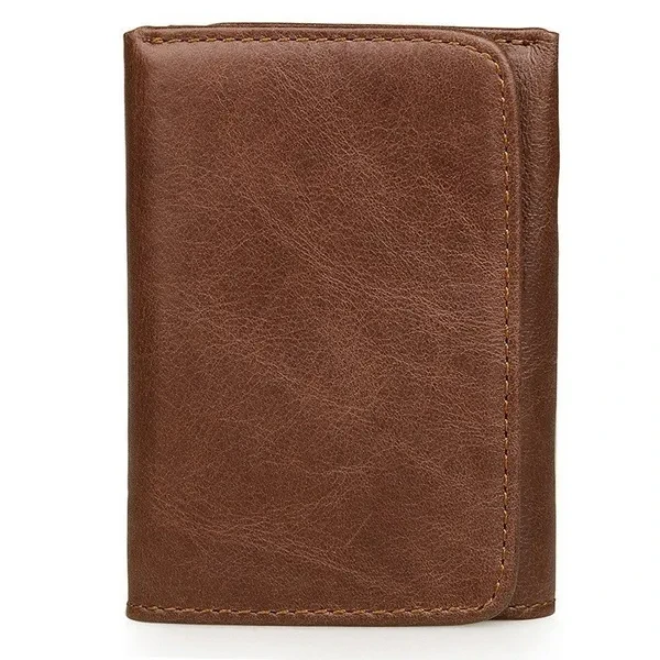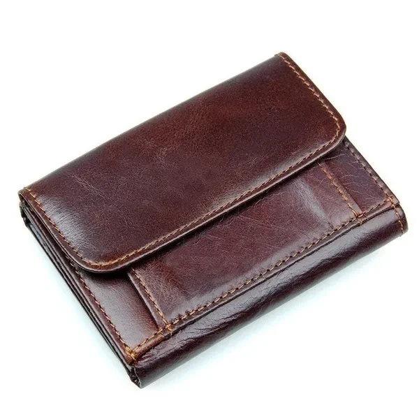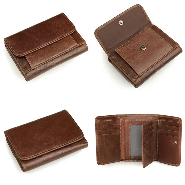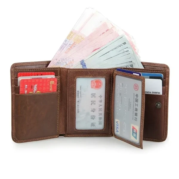 Fashion Vintage Genuine Leather Men Trifold Wallet with Coin Pocket Credit Card Holder Purse