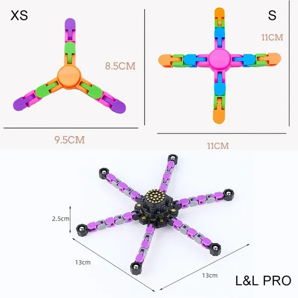 Item:Fidget spinner [Random color delivery] Style: XS--- 3 links model_ D9.2cm*T1.5cm, S --- 4links model_ D11cm*T1.5cm, L & L Pro 6links--- 6links model_ D13cm*T2.5cm ( L Pro can glow in dark) Feature: Fidget spinner toy Deformable gyroscope interdigital spiral Pressure-relief toys Venting toys Relaxing toys Decompression deformable gyroscope 1. Interphalangeal spiral decompression toy 2. Rotate to form dynamic effects 3. Suitable for adults and children 4. Smooth without hurting hands and deforming at will 5. Helps relieve stress Package: 1pcs spinner, random color delivery