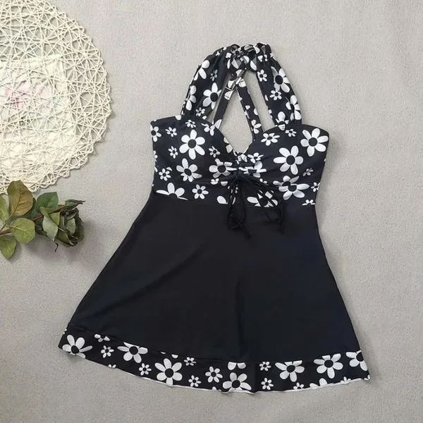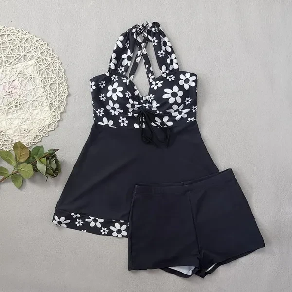 Floral pattern 2-piece tankini, skirt style with shorts swimsuit, women's swimsuit and clothing