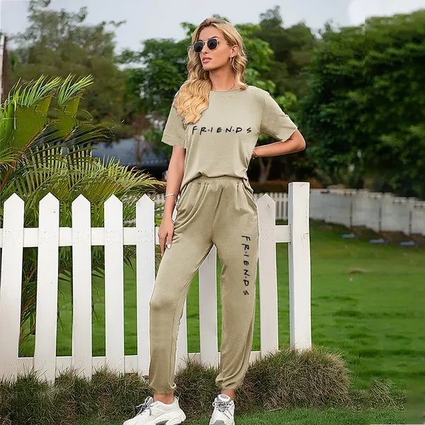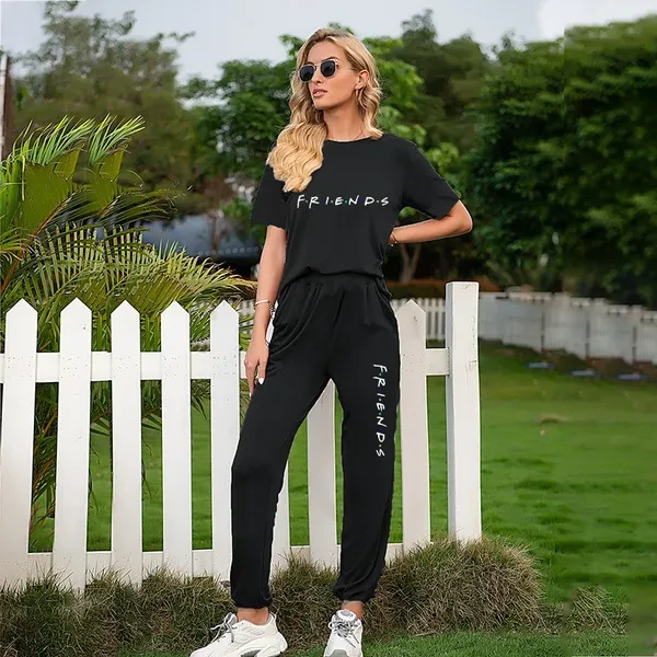 Friends New Trending Women Sports Suits Two Pieces Suits Lady Short Sleeve Sports Suits Fashion Sweatshirts Long Pants Jogging Suits