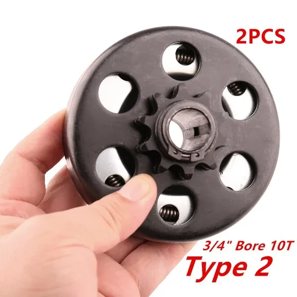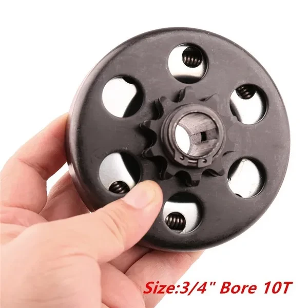 Size1: Size:3/4" Bore 10T 1.Centrifugal Clutch 3/4" bore, 10 Tooth for 40,41,420 chain, Up to7HP engines. Common clutch for 3.5-7hp engines 3600 to 4200 RPM 2.Perfect for Go Kart Minibike Baja Mini Bike MB165 and MB200, including Baja Heat, Mini Baja and the Baja Warrior 3.Compatible with 2-6.5hp Honda and Honda Cloned Engines GC160, GC190, GX120, GX140, GX160, GX200 Briggs and Stratton and 2-6.5 HP with 3/4” Shaft Tecumseh Engines 4.Mounts onto crankshaft using bolt and washer on the end of the crankshaft 5.Set screws and chain NOT included Compatibility: Baja Mini Bike MB165 & MB200 (Baja Heat, Mini Baja, Baja Warrior) Package includes 1 x Go Kart Clutch