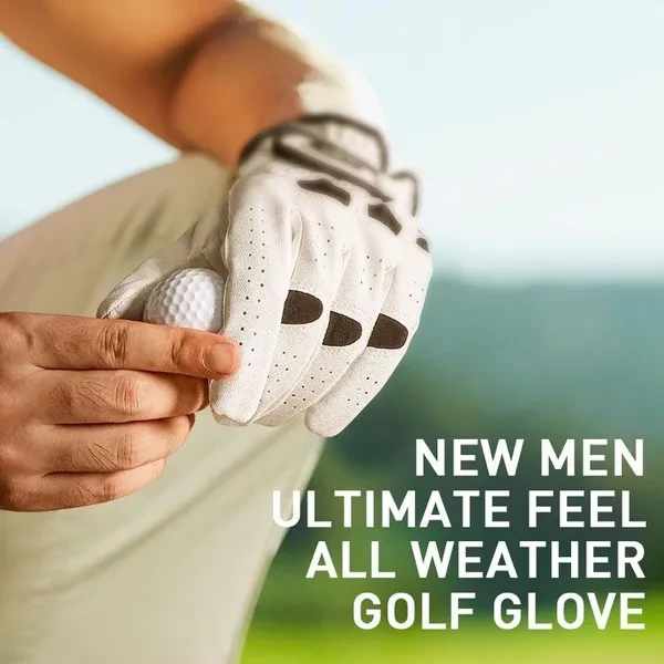 Golf Gloves Men with Ball Marker 3 Pack Mens Left Hand Right Hand PU Leather Golf Gloves All Weather Grip Fit Size S M ML L XL