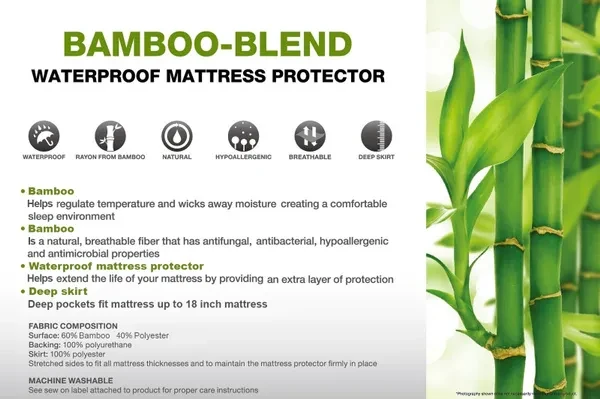 This bamboo Mattress Topper Protector and Pads features a super-soft fabric to add a cloud like surface to the bed. The pad is made from bamboo and polyester fabric. Sewn with deep pockets that fit up to 18 inch mattresses, as a mattress protector, and it fits even deep mattresses like pillow-tops. Designed to go in the washer or dryer for simple care. This exclusive and extraordinary technology gives you the look and feel of bamboo only better, and makes the cover hypoallergenic and 100% washable. The expandable skirt allows the cover to fit any thicker pillow top mattress with ease. Features: • Protect your mattress from liquids and stains with the basic waterproof mattress protector • Fabric: 60% Bamboo, 40% Polyester with polyurethane laminated • This mattress pad is machine washable • Deep Pocket fits up to 18 inch mattress Sizes: • Twin size: 39" W x 75" L • Full size: 54" W x 75" L • Queen size: 60" W x 80" L • King size: 78" W x 80" L