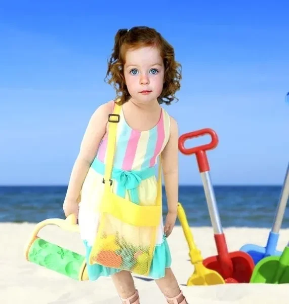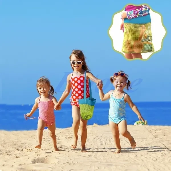Kids Sand Away Carry Beach Treasures Toys Pouch Tote Mesh Childrens Storage Bag