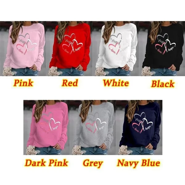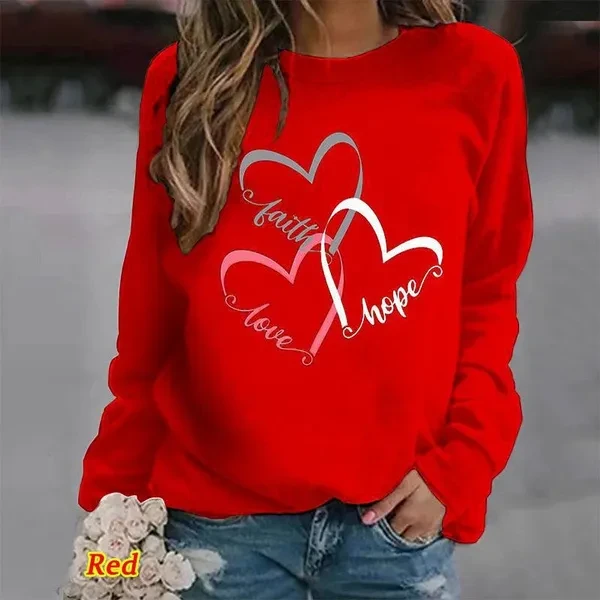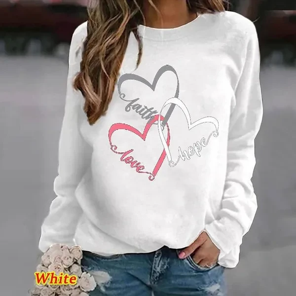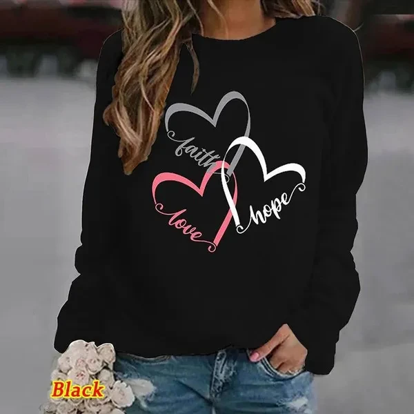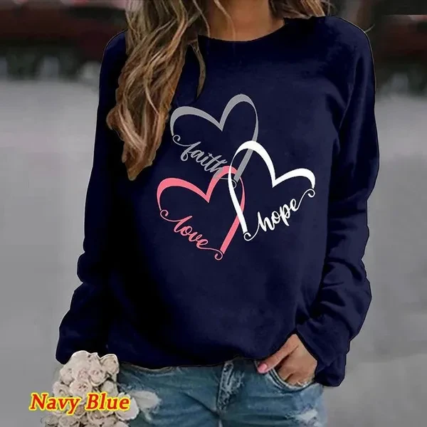 Ladies Fashion Clothes Round Neck Love Faith Hope Printed Pullover Sweatshirts Autumn and Winter Soft Warm Sportswear Loose Jumpers Casual Streetwear Tops Long Sleeved Sweatshirts