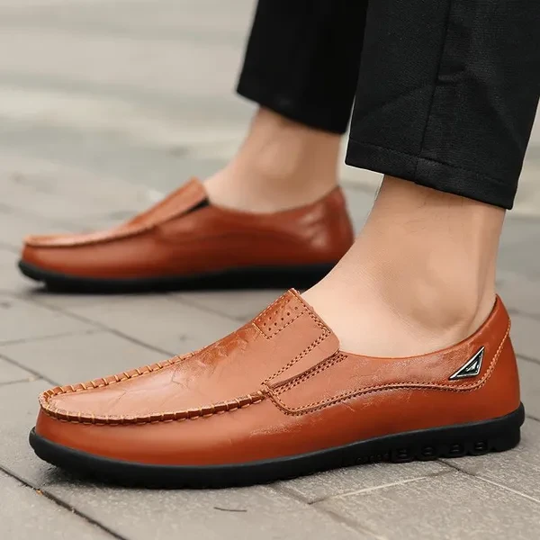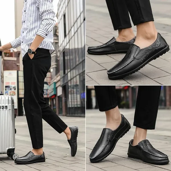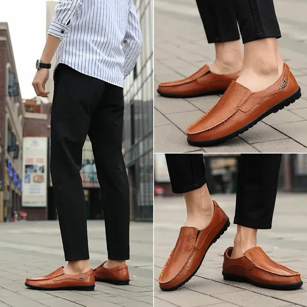 Welcome to LANBOO shop and enjoy your shopping moment~ Suitable season: All Seasons Toe shape: Round Head Style: Casual Upper material: Leather Color:Black,Dark brown,Light brown Material: The upper is made of high quality leather material, I believe you will be satisfied with its high quality. Anti-slip protection: The lightweight and non-slip sole made of polyurethane increases softness, flexible folding performance and shock absorption, which can provide better support and balance, and perfectly adapt to your daily needs. Fashion: With classic design, low-key and gentlemanly, it will never go out of fashion. It can be well matched with the clothes in your wardrobe. Color selection: Three colors are available, black, dark brown, light brown, you can choose the style that suits you~ Suitable for many occasions: indoor and outdoor activities, daily walks, travel and more. This makes a great holiday gift. This is a great gift idea for him! Just for Valentine's Day, Christmas, Thanksgiving, New Year's Day! If you want make a very correct choice you should choose by the size chart at the image !(If your feet have a bit fat, please choose one bigger size.)