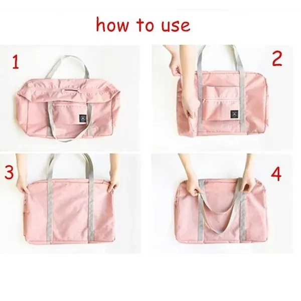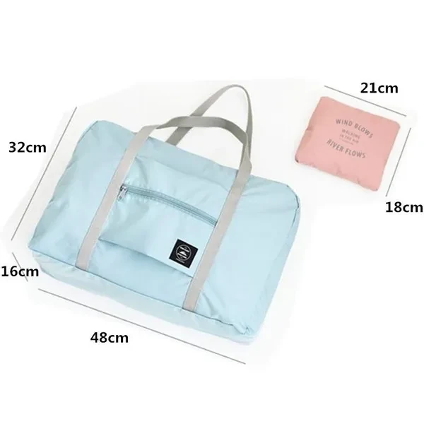 Package Includes : 1 x Large Travel Bag Specification : Material : Polyester Color : Light Blue, Dark Blue, Wine Red, Pink Size : Unfolded : 48cm x 32cm x 16cm / 18.90'' x 12.60'' x 6.30'' Folded : 21cm x 18cm / 8.27'' x 7.09''