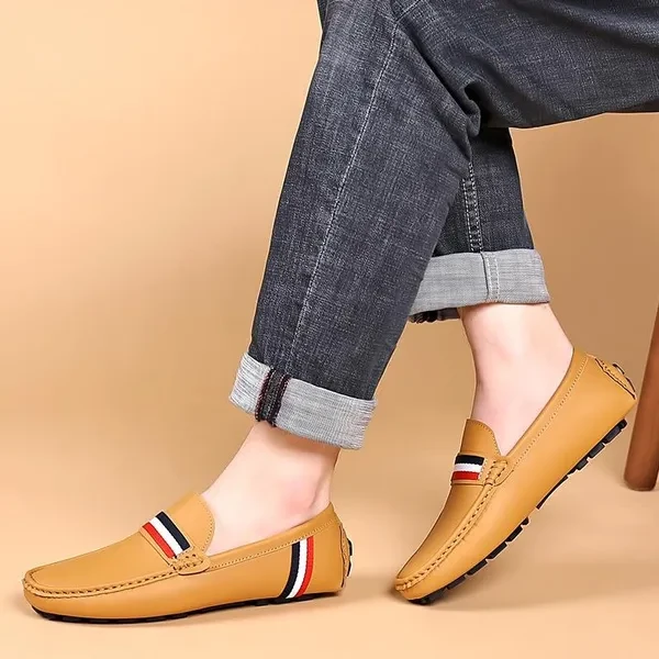 Leather Loafers for Men Handmade Moccasins Mens Shoes Flats Casual Leather Shoes for Men Luxury Comfy Mens Loafers Size 46
