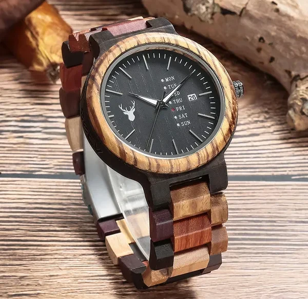 LeeEv Mens Wooden Watch Natural Solid Sandal Multi Color Wood Watch for Men