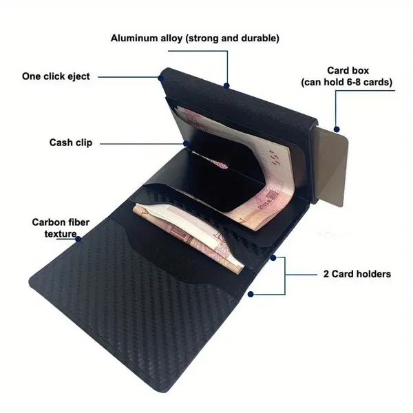 Luxury Carbon Fiber RFID Anti-theft Business Card Bag Wallet Case for Men - Premium Accessories with Card Holder Function - Stylish and Secure